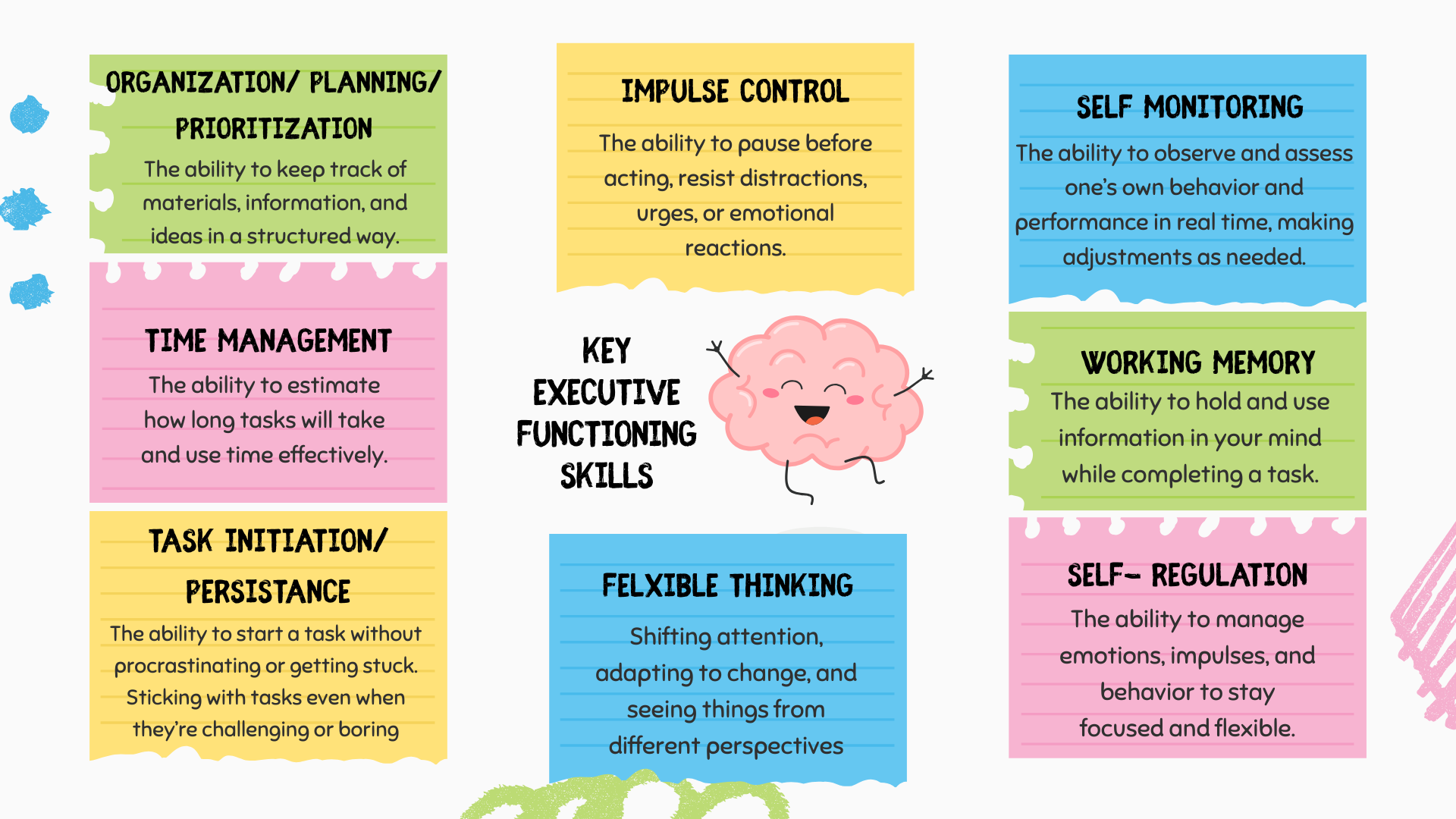 Executive functioning skills are the mental tools that help students stay organized, manage time, set goals, and tackle challenges with confidence. I work with students and families to strengthen these skills so school—and life—feels more manageable.